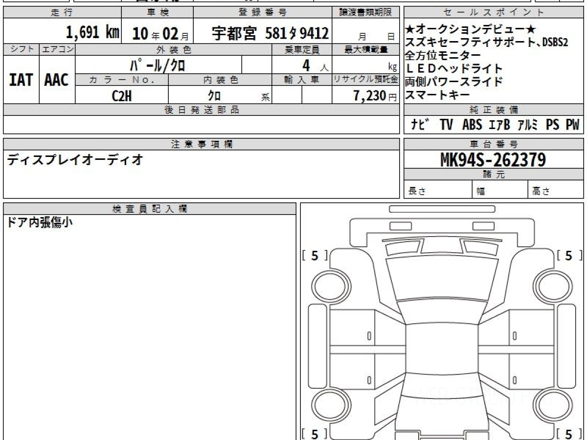 Оценка аукциона: 6, что гарантирует хорошее техническое и косметическое состояние кузова и салона.