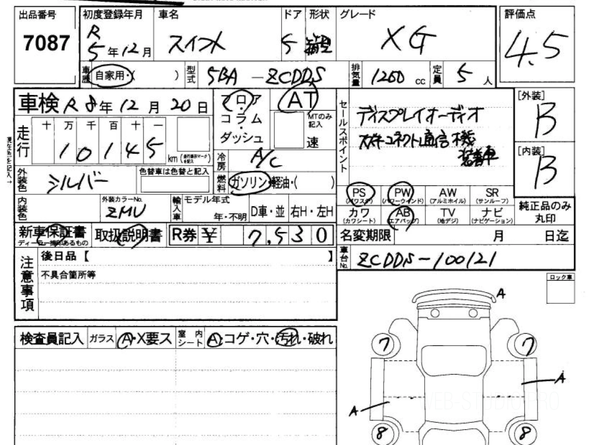 Оценка аукциона: 4.5, что гарантирует хорошее техническое и косметическое состояние кузова и салона.