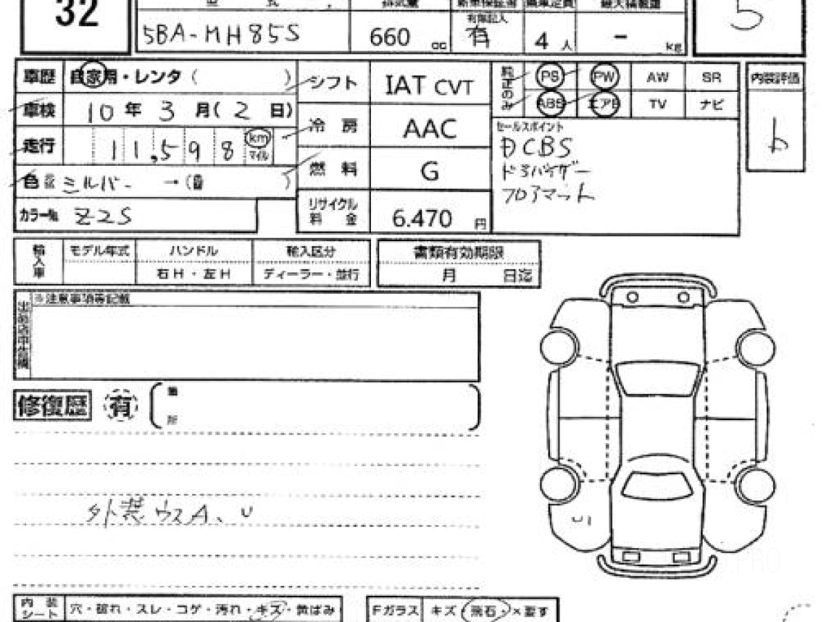 Номер кузова: MH85S.