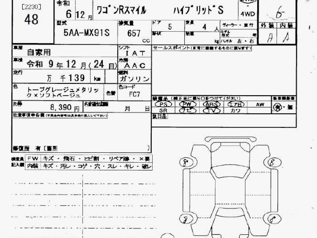 Стоимость SUZUKI WAGON R SMILE MX91S 2024 определяется исходя из состояния и комплектации автомобиля. Указанная цена учитывает таможенные платежи и затраты на доставку во Владивосток.