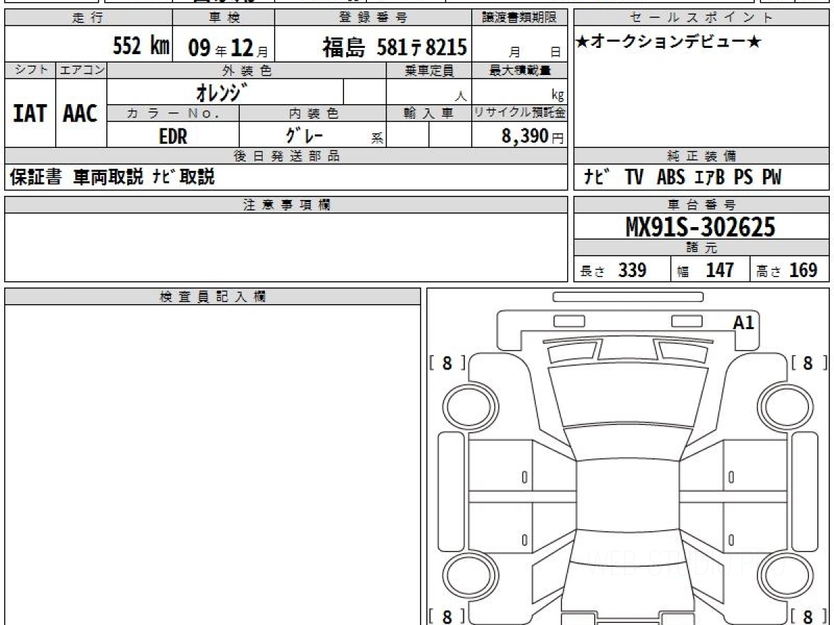 Оценка аукциона: 6, что гарантирует хорошее техническое и косметическое состояние кузова и салона.