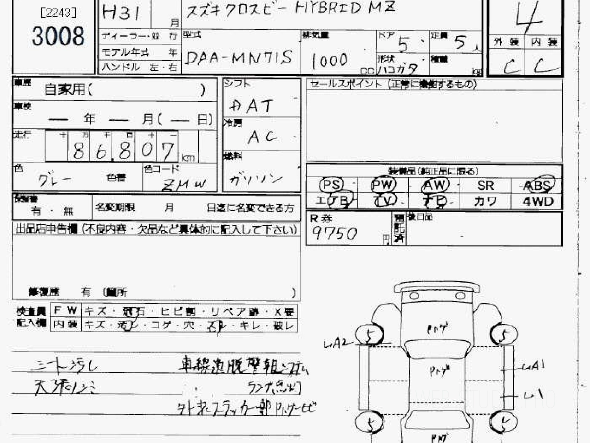 Оценка аукциона: 4, что гарантирует хорошее техническое и косметическое состояние кузова и салона.