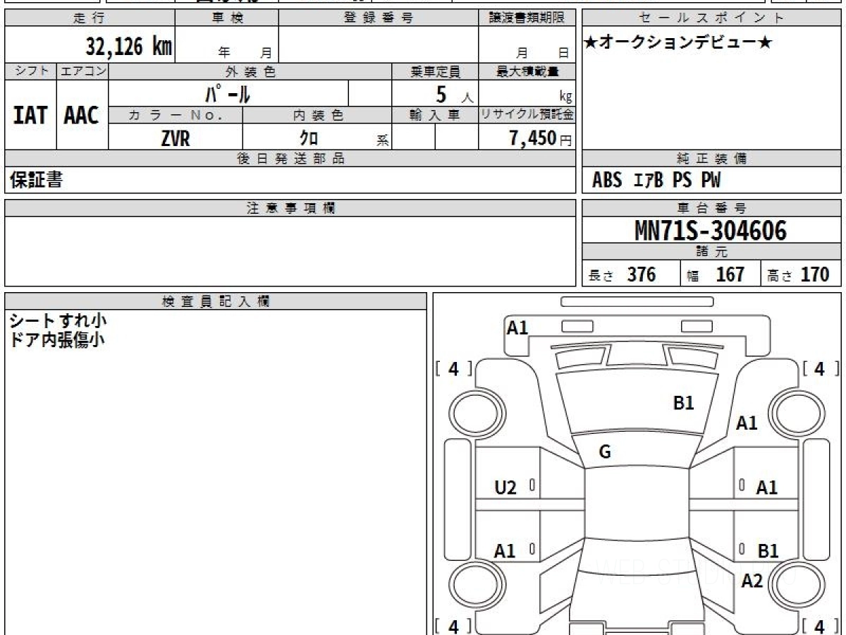 Оценка аукциона: 4, что гарантирует хорошее техническое и косметическое состояние кузова и салона.