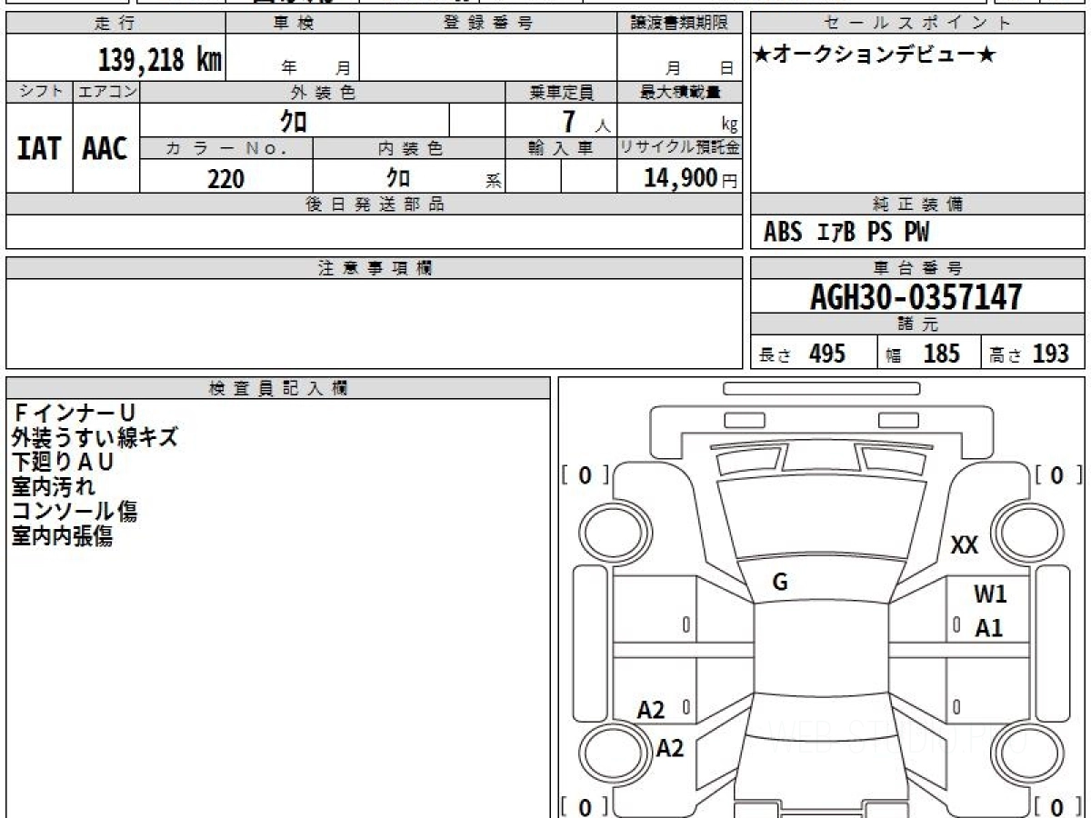 Номер кузова: AGH30W.