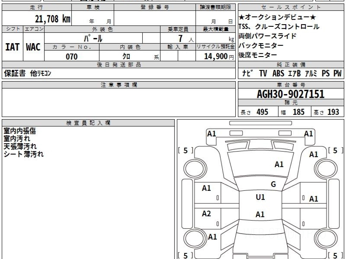 Номер кузова: AGH30W.