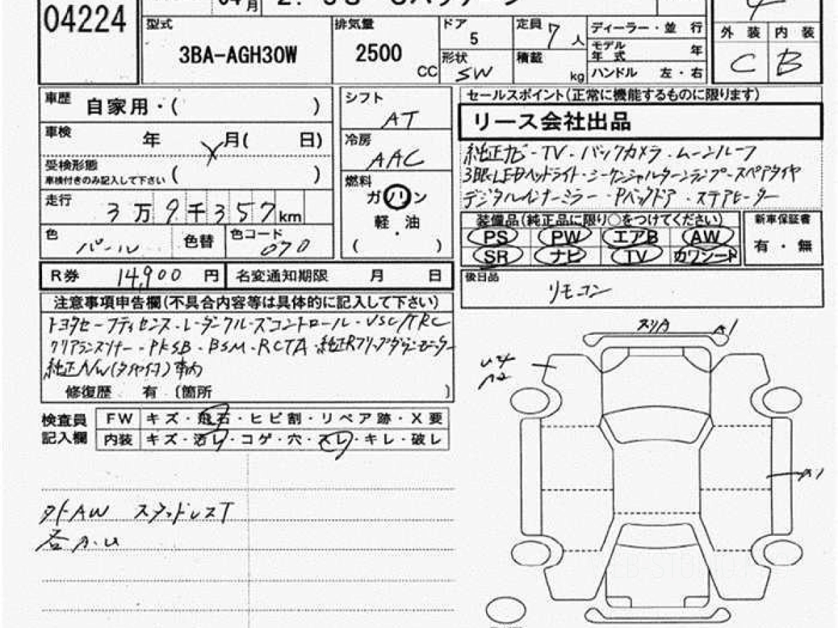 Номер кузова: AGH30W.