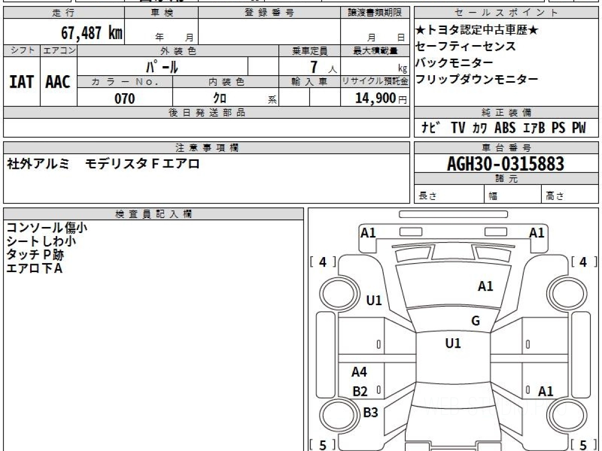 Номер кузова: AGH30W.
