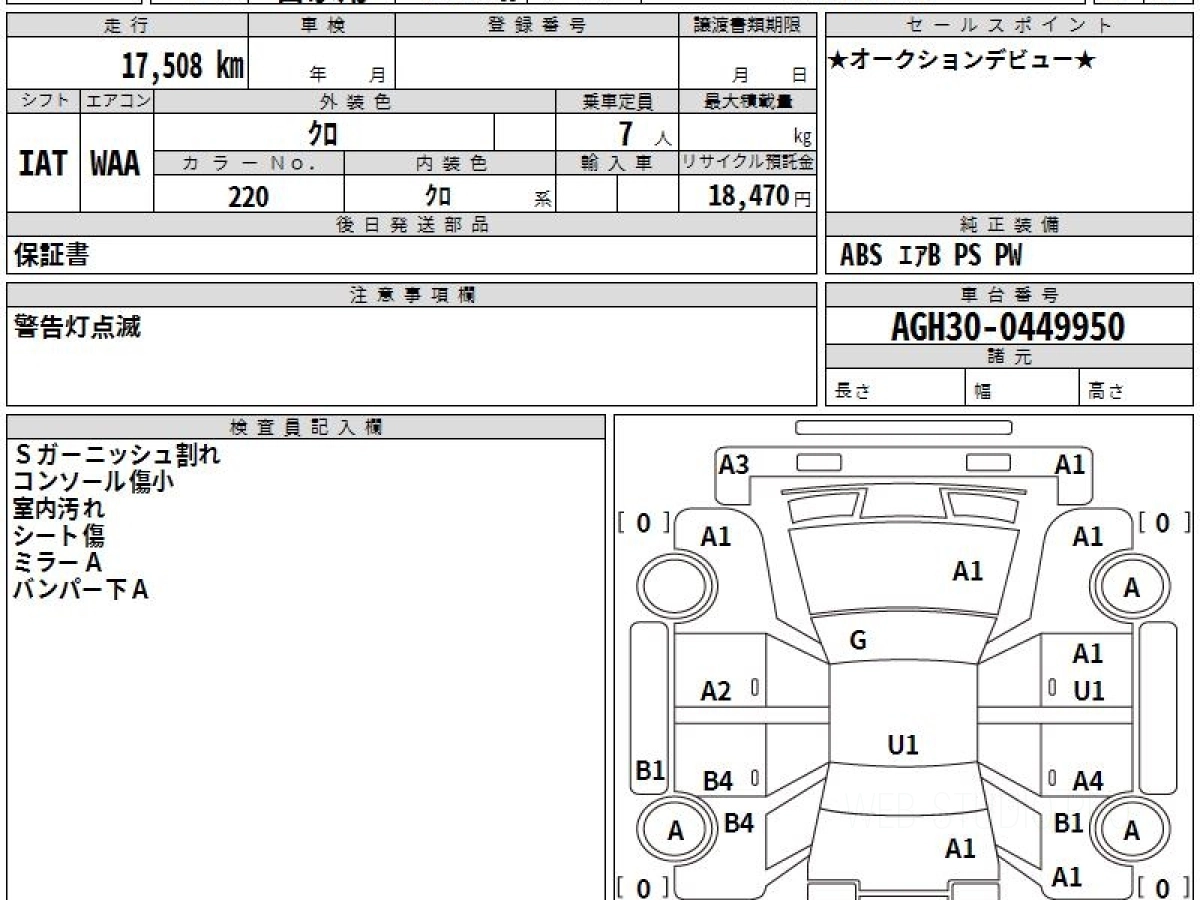 Номер кузова: AGH30W.