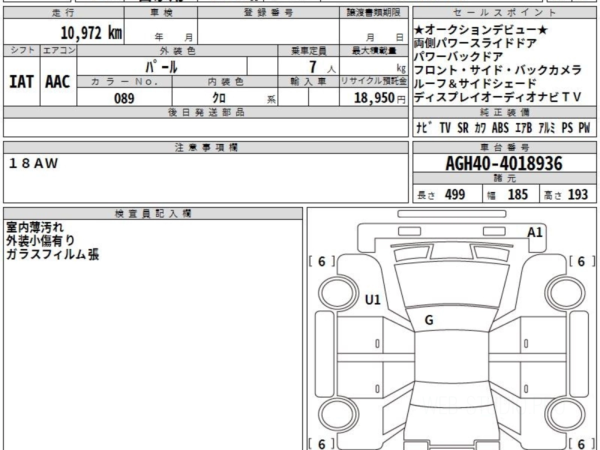 Номер кузова: AGH40W.