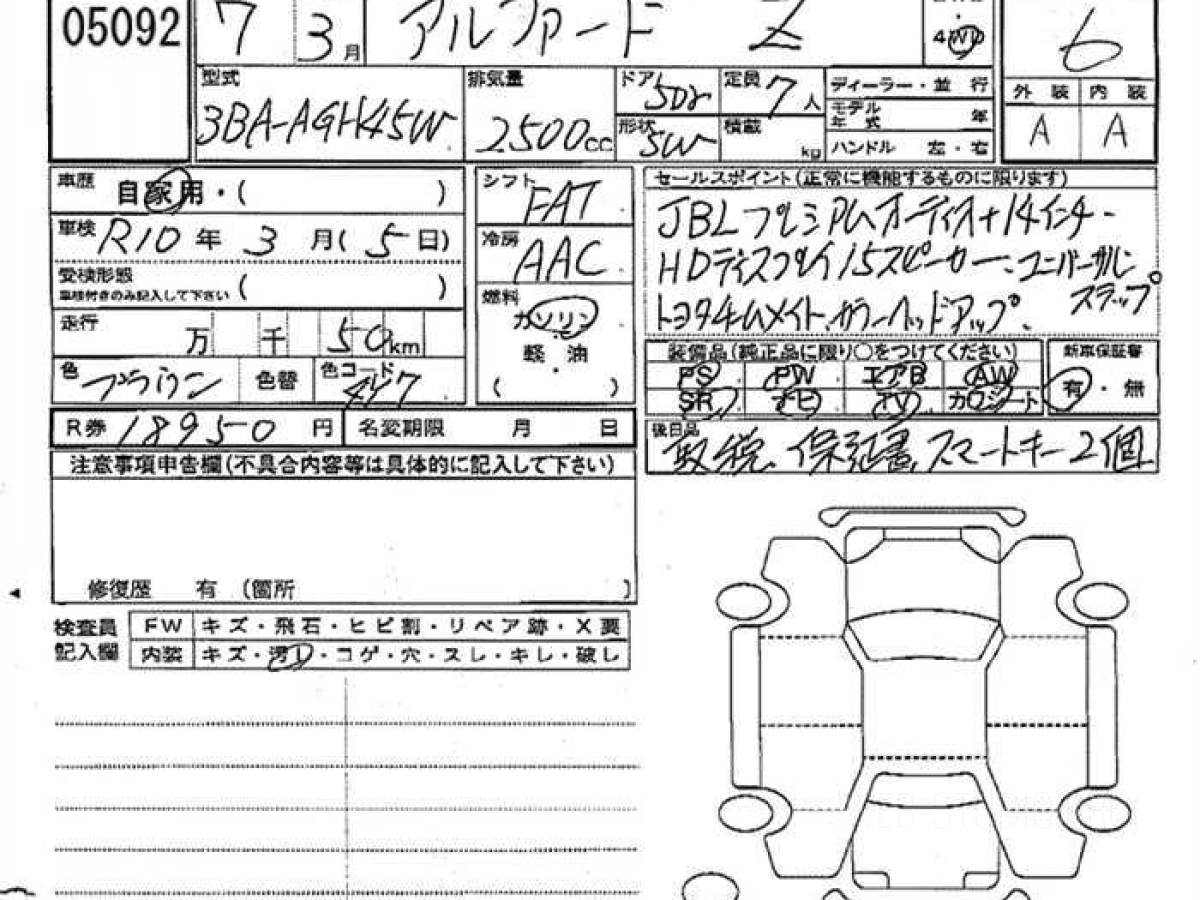 Номер кузова: AGH45W.