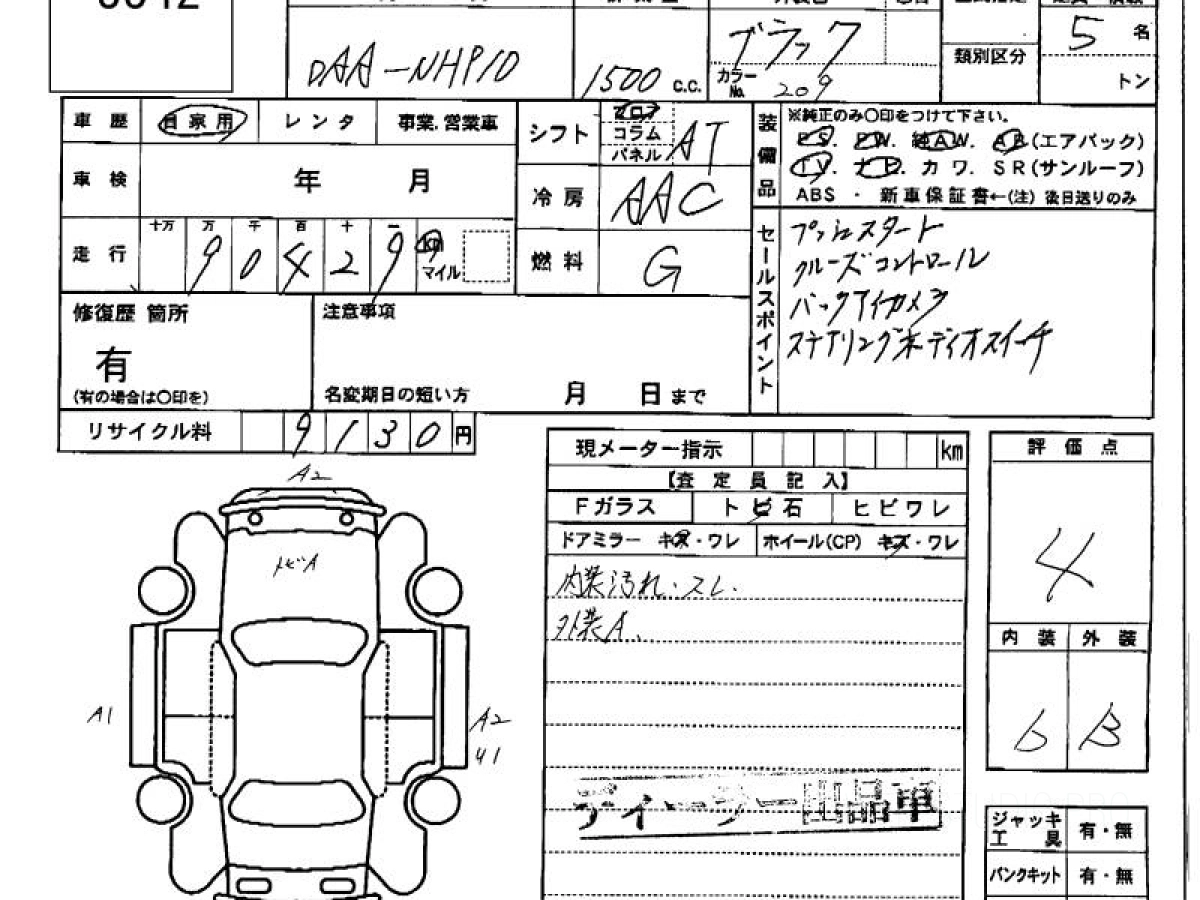 Оценка аукциона: 4, что гарантирует хорошее техническое и косметическое состояние кузова и салона.