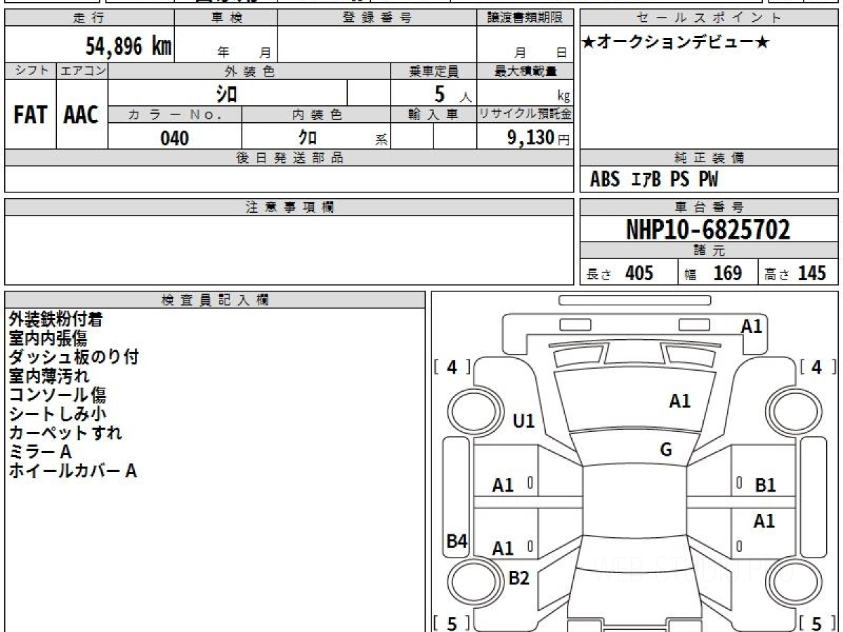 Номер кузова: NHP10.