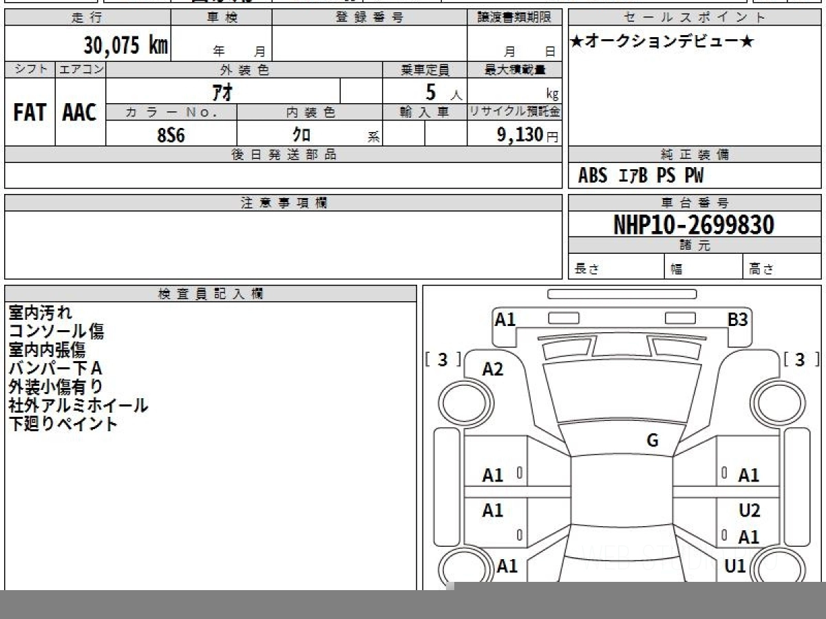 Номер кузова: NHP10.
