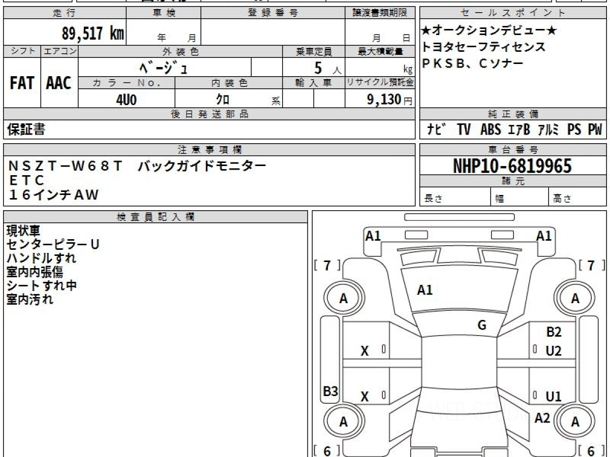 Оценка аукциона: R, что гарантирует хорошее техническое и косметическое состояние кузова и салона.