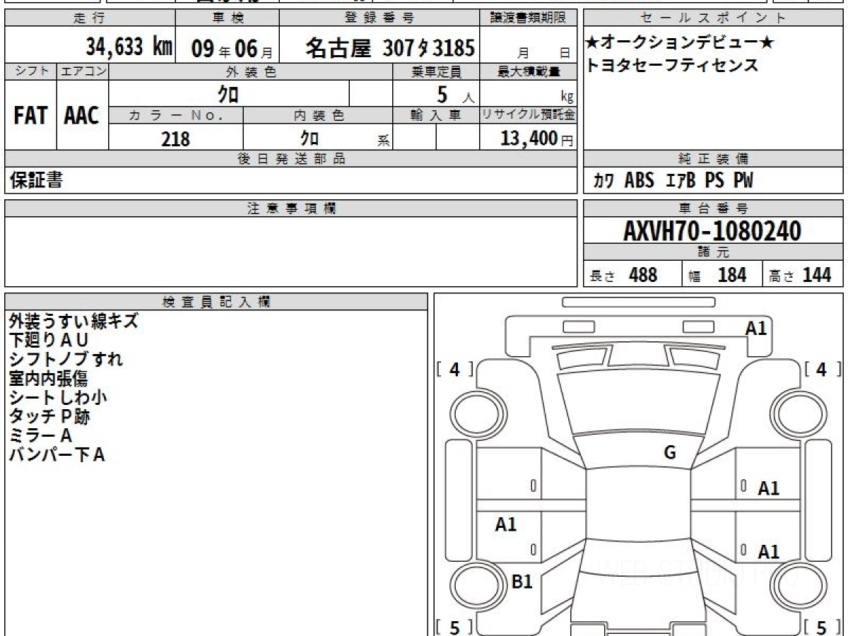 Номер кузова: AXVH70.