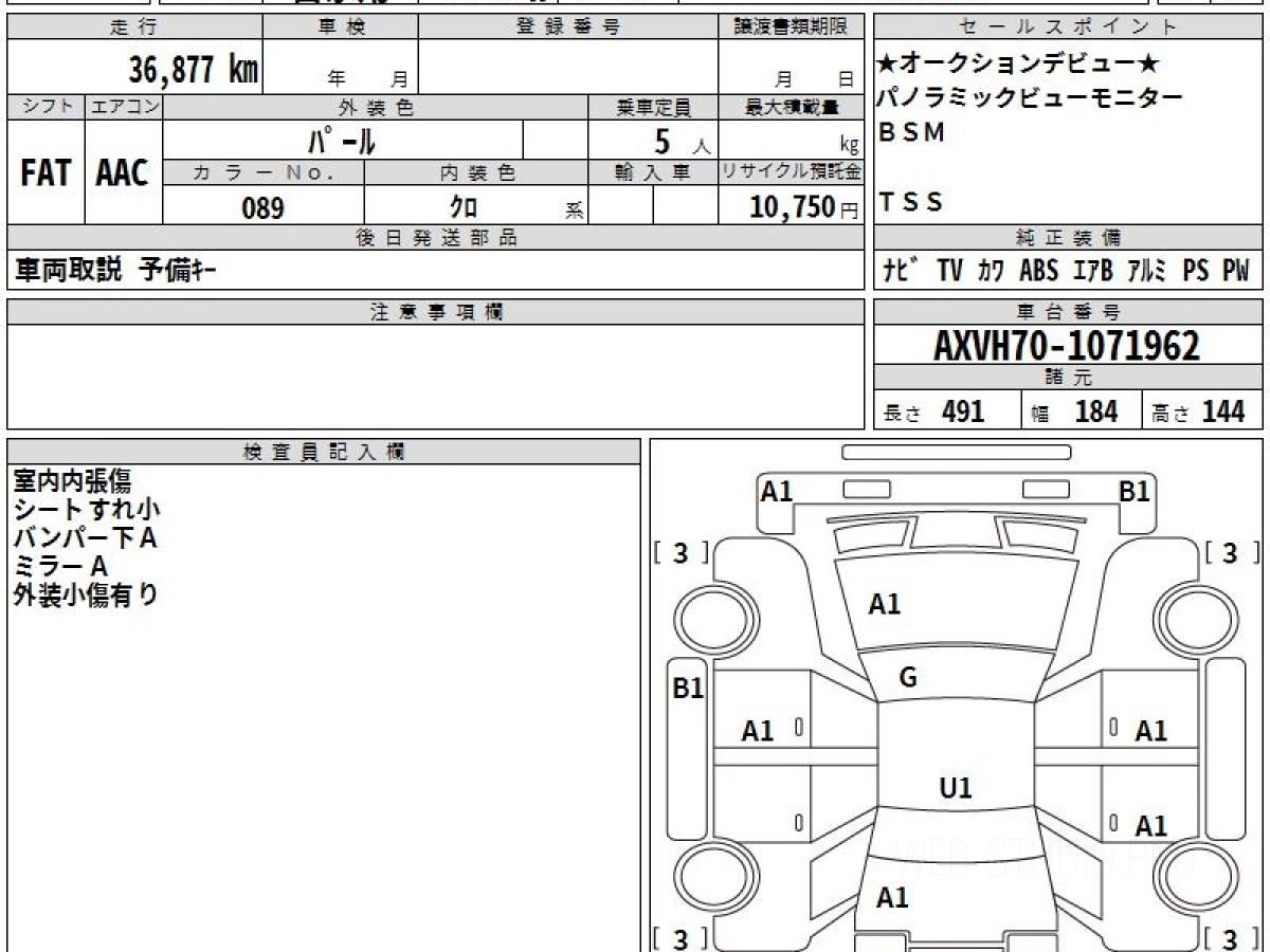 Номер кузова: AXVH70.