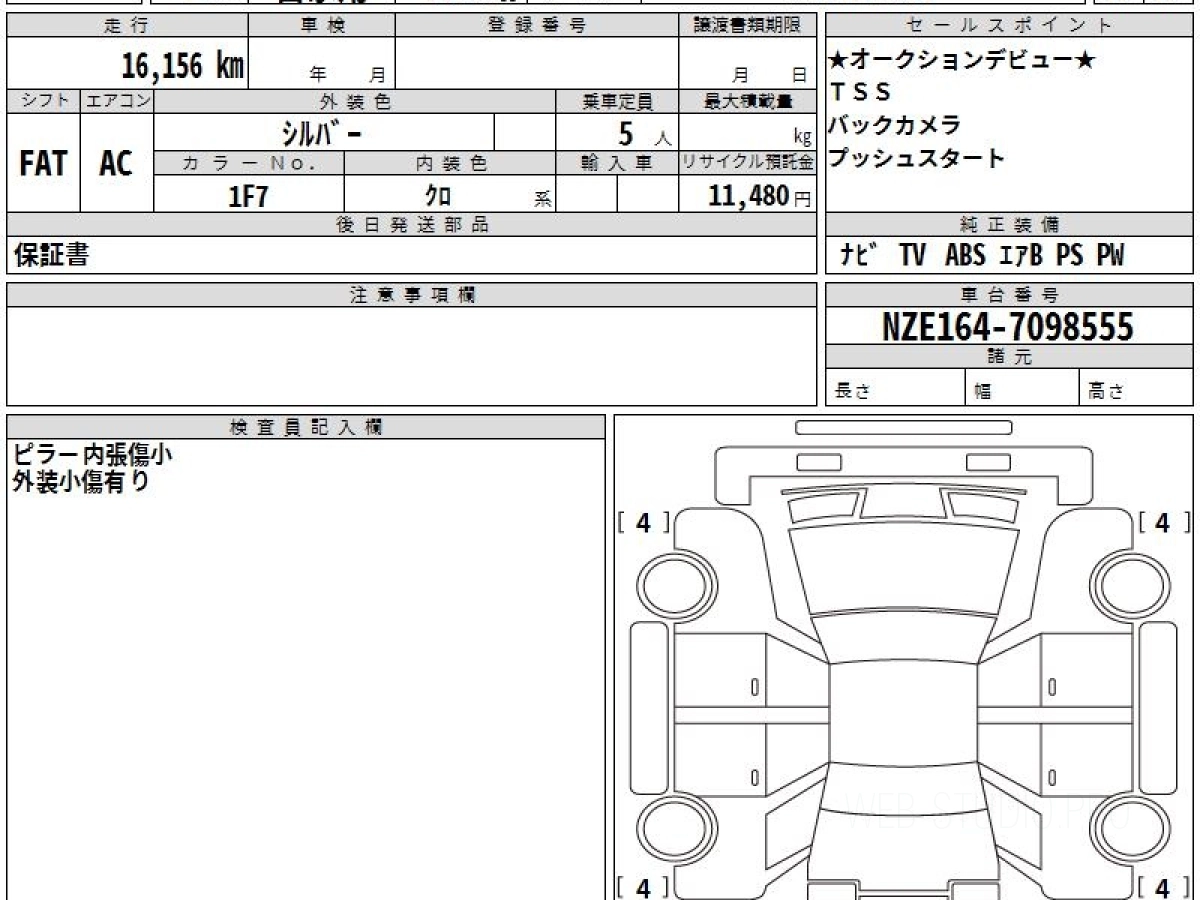 Номер кузова: NZE164.