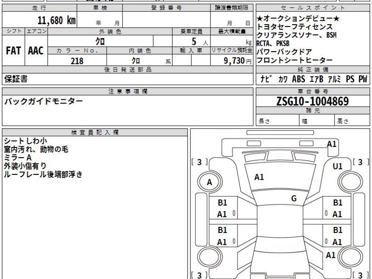 Оценка аукциона: 4, что гарантирует хорошее техническое и косметическое состояние кузова и салона.