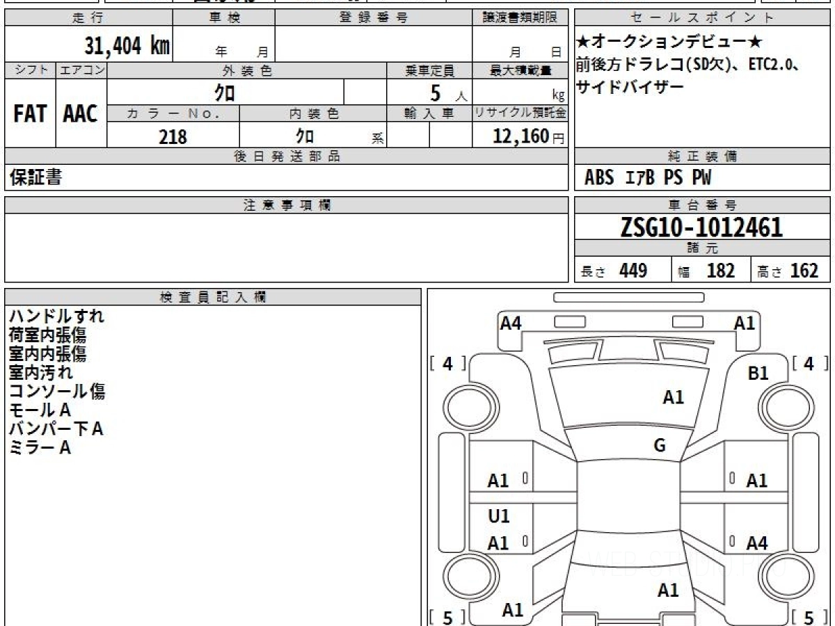 Оценка аукциона: 4, что гарантирует хорошее техническое и косметическое состояние кузова и салона.