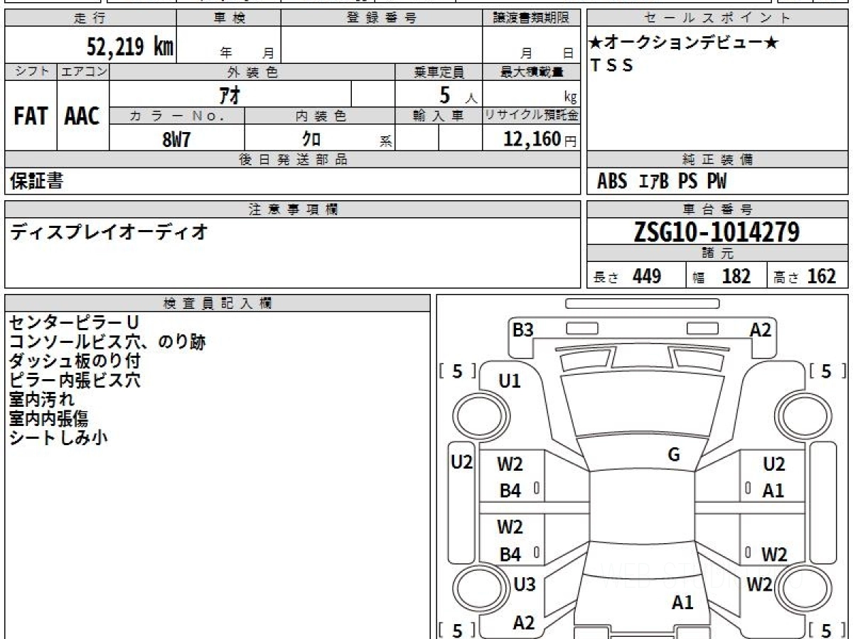 Оценка аукциона: RA, что гарантирует хорошее техническое и косметическое состояние кузова и салона.