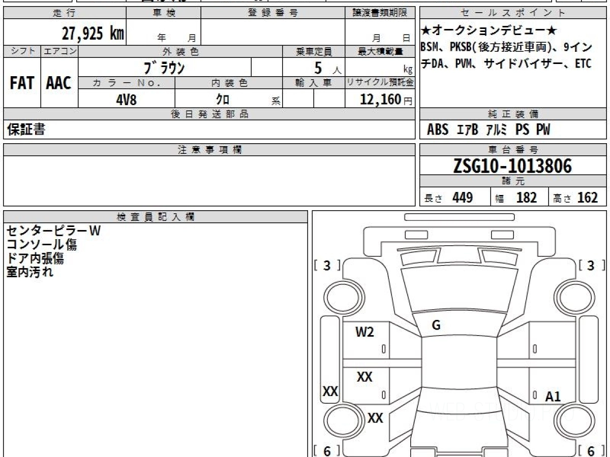 Оценка аукциона: R, что гарантирует хорошее техническое и косметическое состояние кузова и салона.