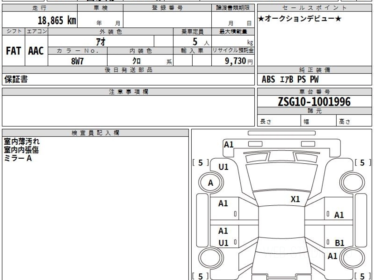 Оценка аукциона: 4, что гарантирует хорошее техническое и косметическое состояние кузова и салона.