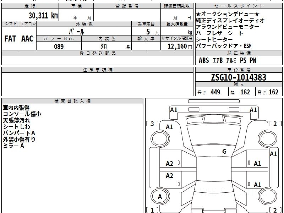Оценка аукциона: 4, что гарантирует хорошее техническое и косметическое состояние кузова и салона.