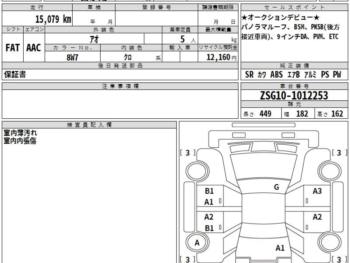Оценка аукциона: 4, что гарантирует хорошее техническое и косметическое состояние кузова и салона.