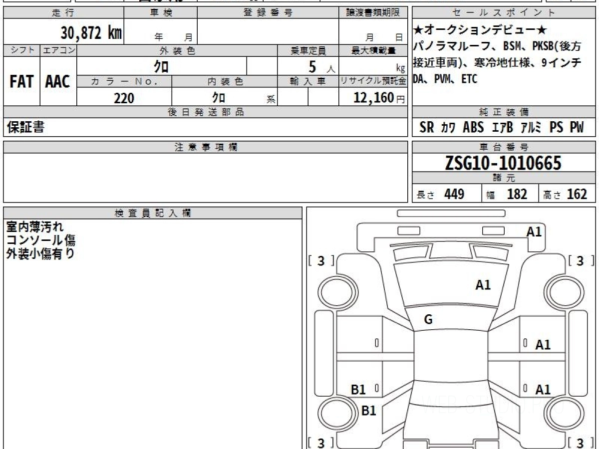 Оценка аукциона: 4.5, что гарантирует хорошее техническое и косметическое состояние кузова и салона.