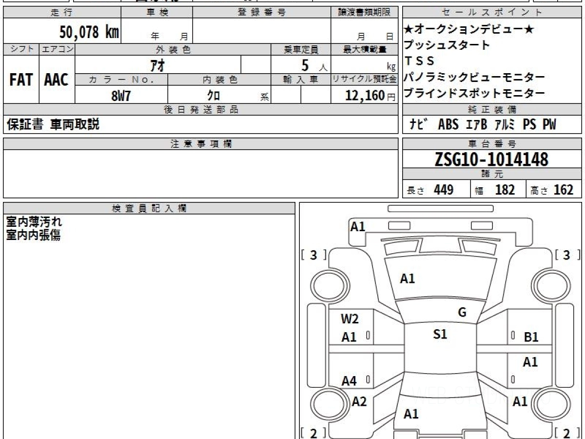 Оценка аукциона: 4, что гарантирует хорошее техническое и косметическое состояние кузова и салона.
