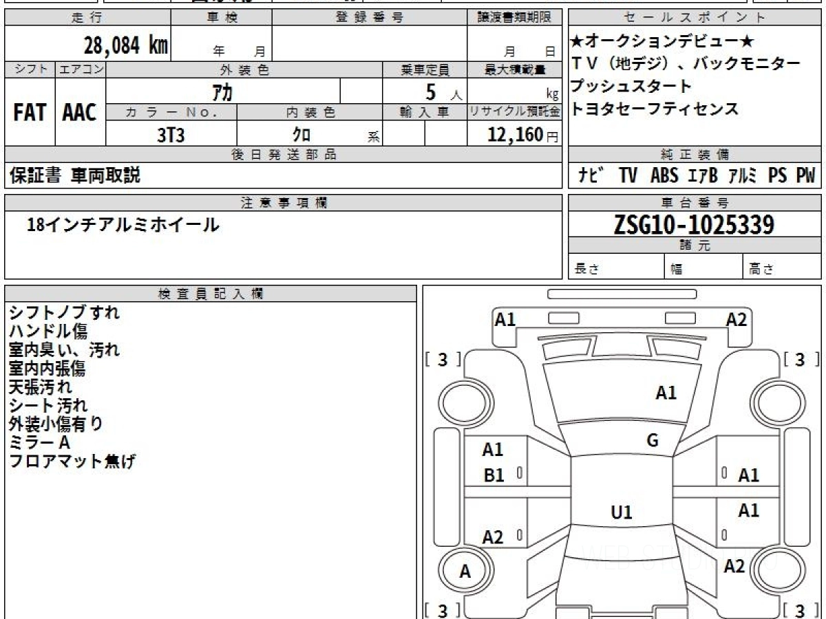 Оценка аукциона: 4, что гарантирует хорошее техническое и косметическое состояние кузова и салона.