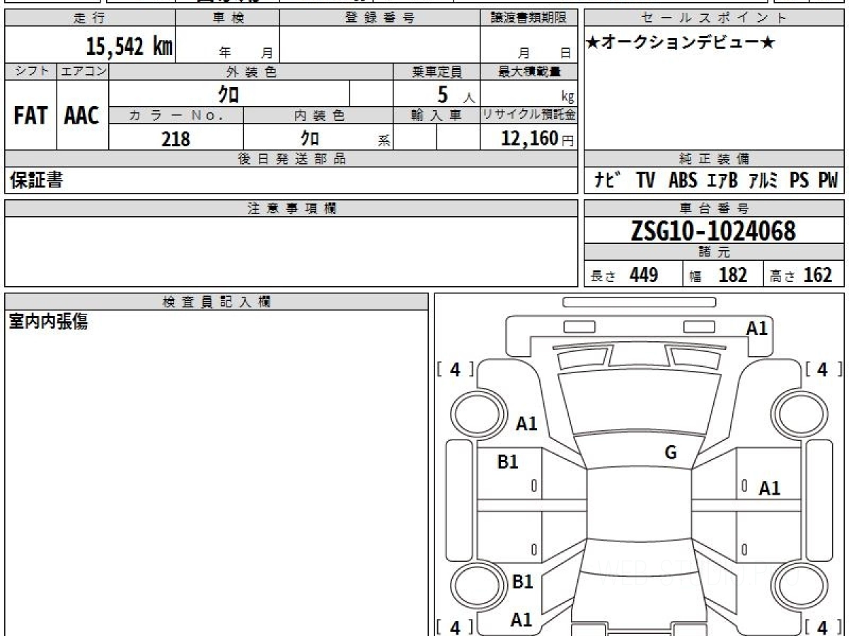 Оценка аукциона: 4.5, что гарантирует хорошее техническое и косметическое состояние кузова и салона.