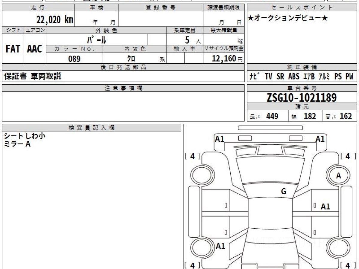 Оценка аукциона: 4.5, что гарантирует хорошее техническое и косметическое состояние кузова и салона.