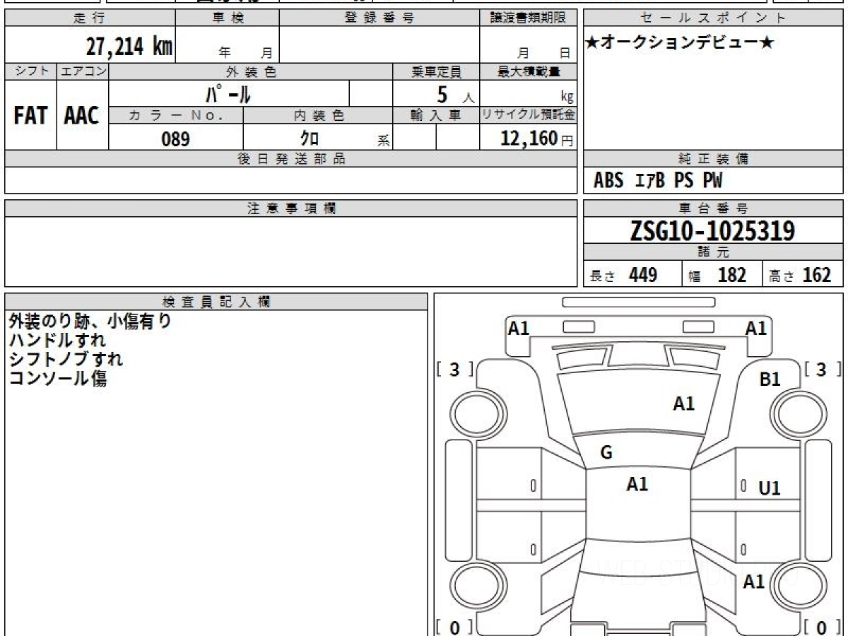 Оценка аукциона: 4.5, что гарантирует хорошее техническое и косметическое состояние кузова и салона.