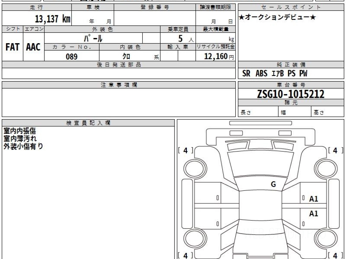 Оценка аукциона: 5, что гарантирует хорошее техническое и косметическое состояние кузова и салона.
