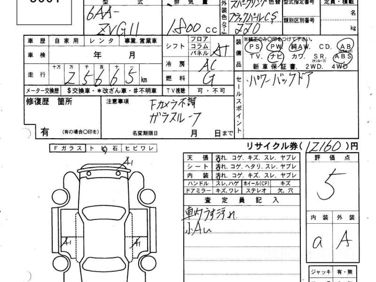 Оценка аукциона: 5, что гарантирует хорошее техническое и косметическое состояние кузова и салона.