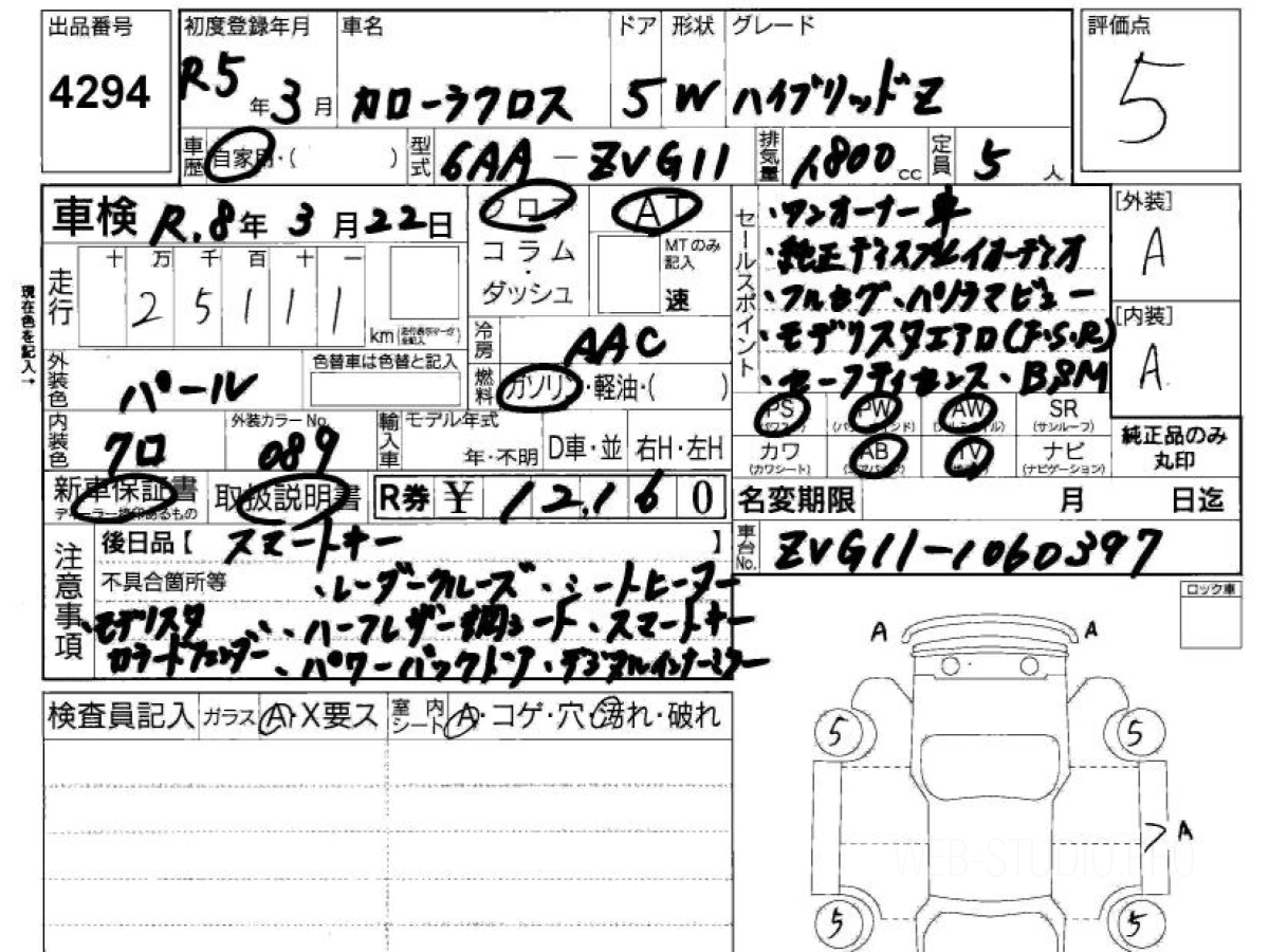 Оценка аукциона: 5, что гарантирует хорошее техническое и косметическое состояние кузова и салона.