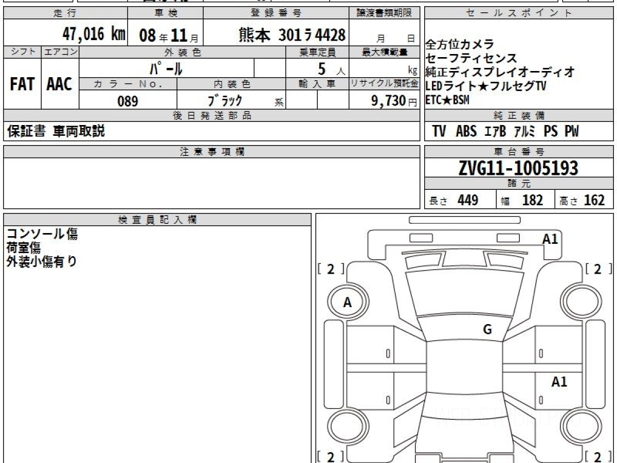 Оценка аукциона: 5, что гарантирует хорошее техническое и косметическое состояние кузова и салона.