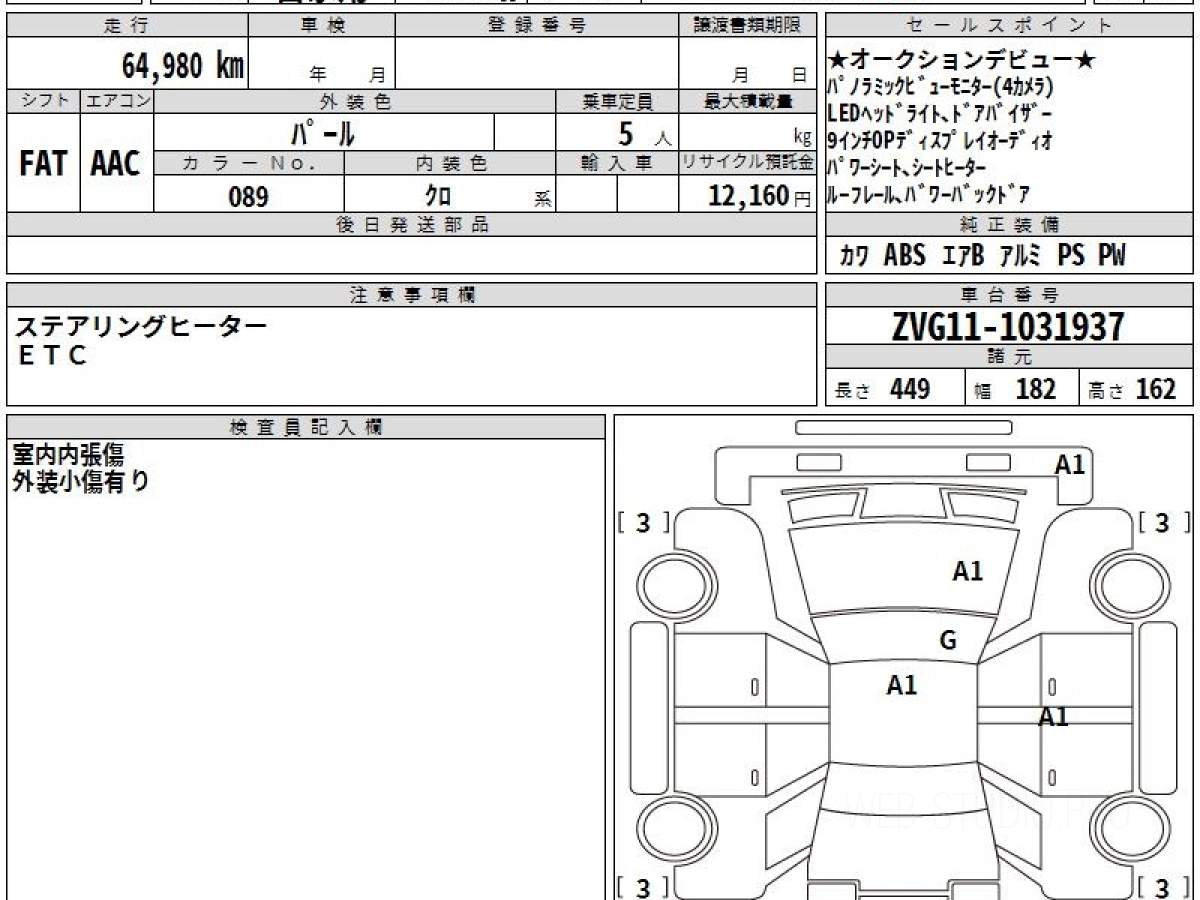 Оценка аукциона: 4.5, что гарантирует хорошее техническое и косметическое состояние кузова и салона.