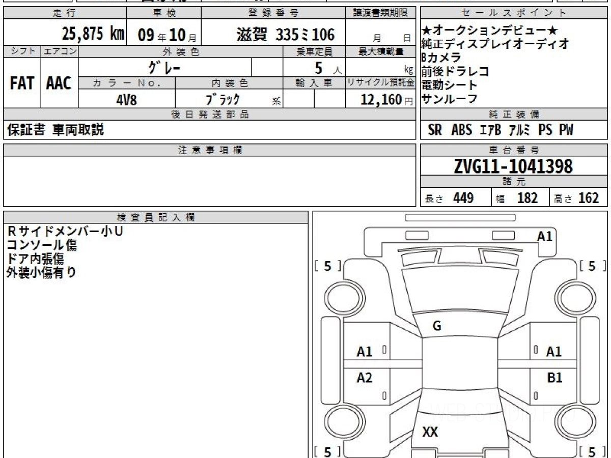 Оценка аукциона: 3.5, что гарантирует хорошее техническое и косметическое состояние кузова и салона.