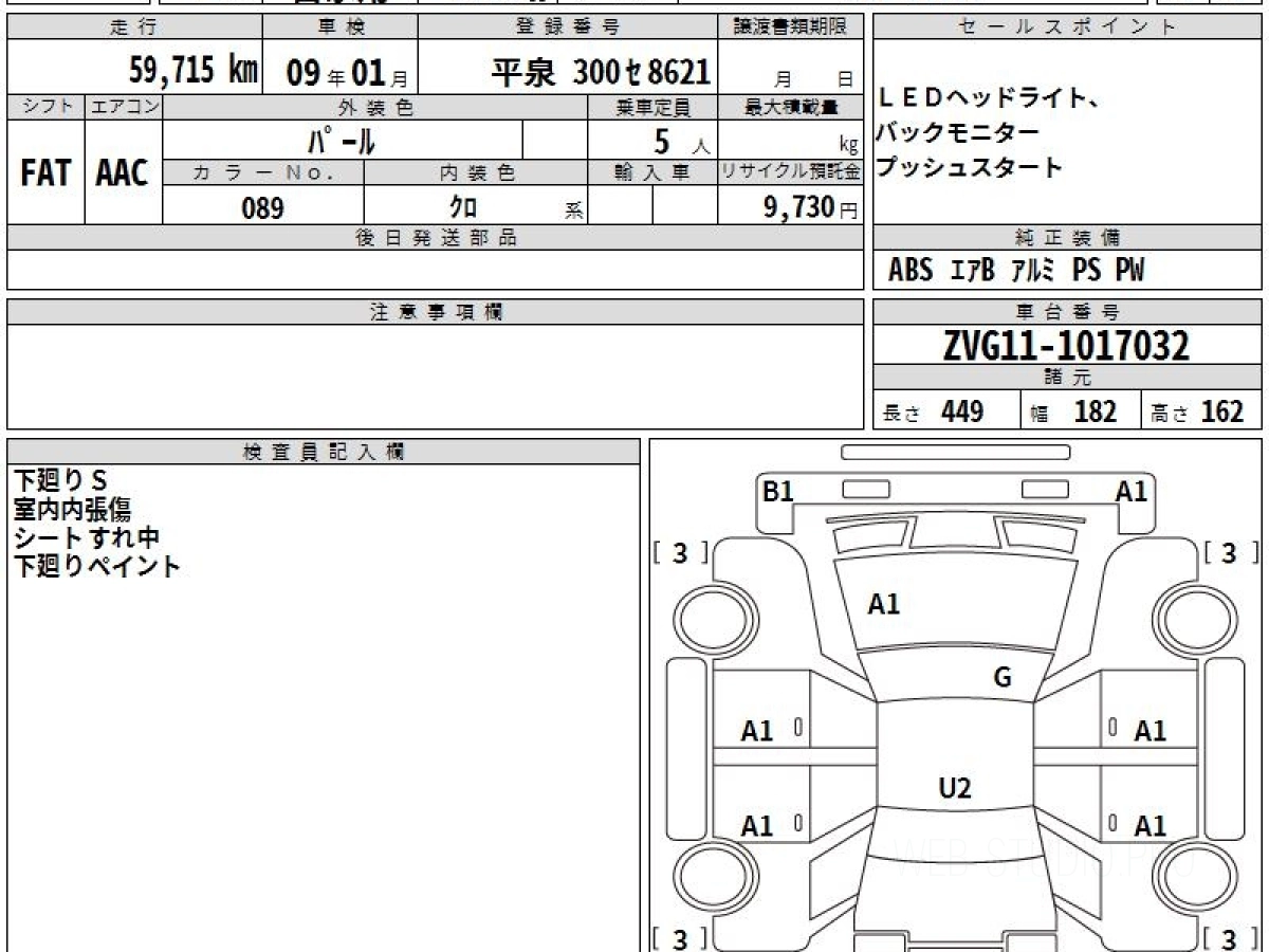 Оценка аукциона: 4, что гарантирует хорошее техническое и косметическое состояние кузова и салона.