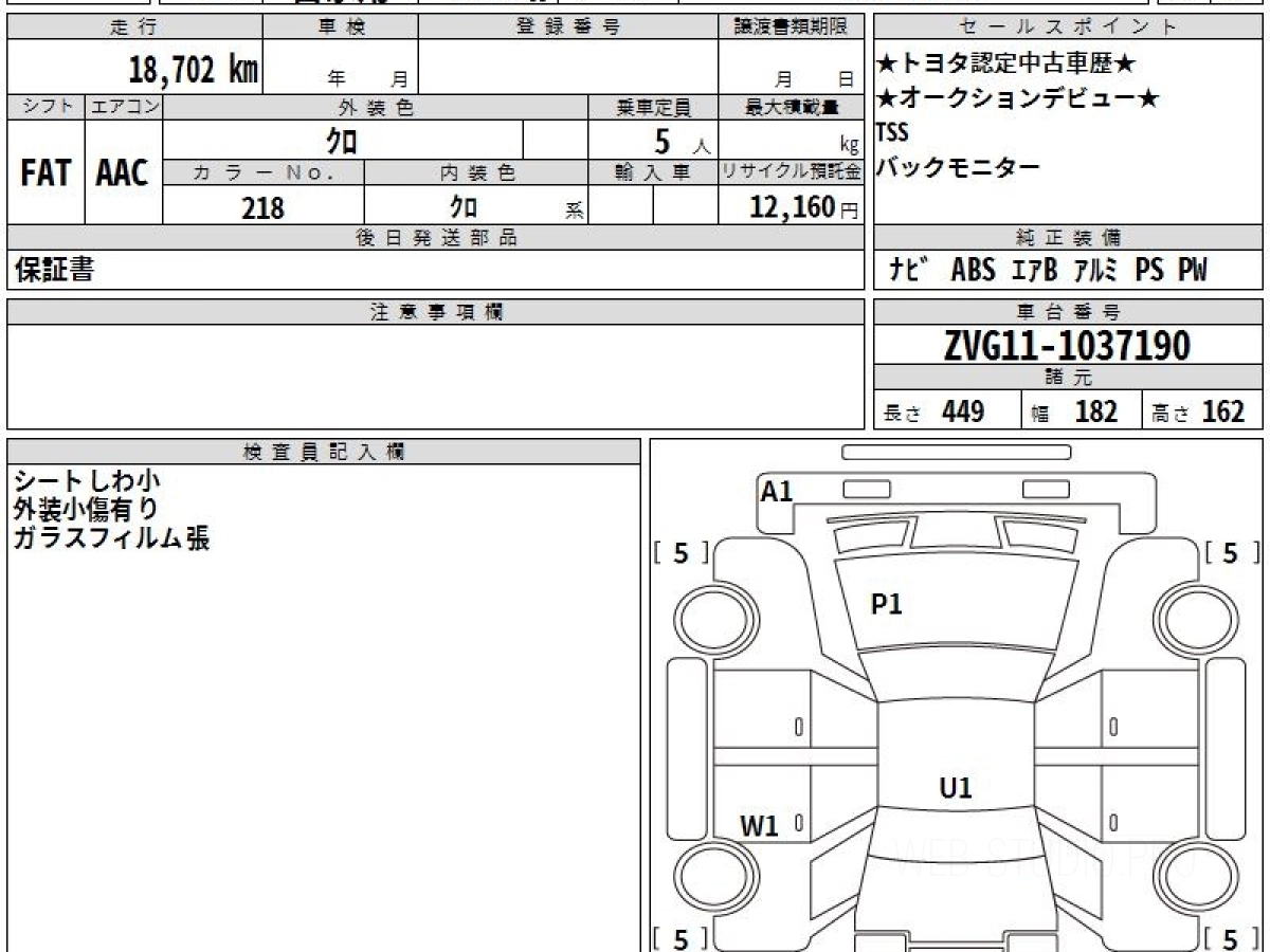 Оценка аукциона: 5, что гарантирует хорошее техническое и косметическое состояние кузова и салона.