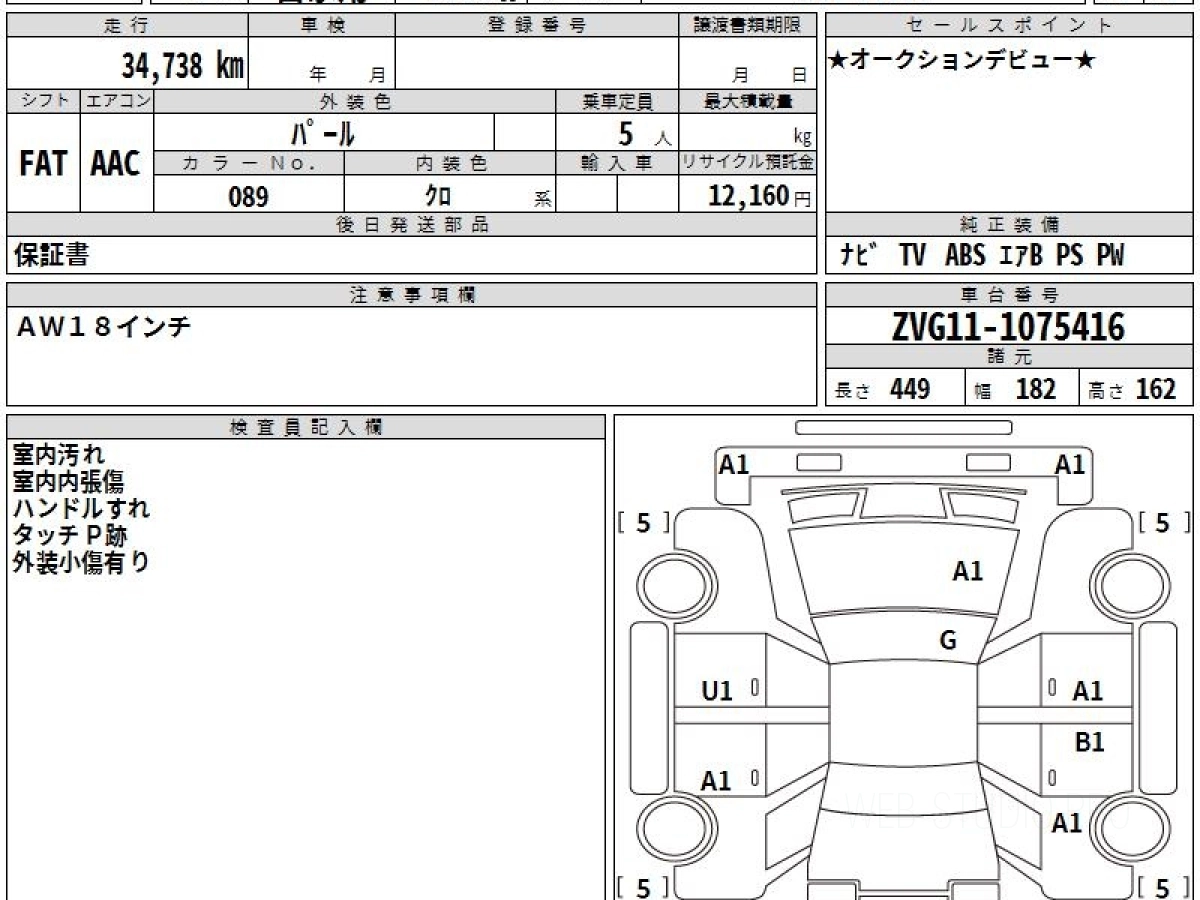 Оценка аукциона: 4, что гарантирует хорошее техническое и косметическое состояние кузова и салона.