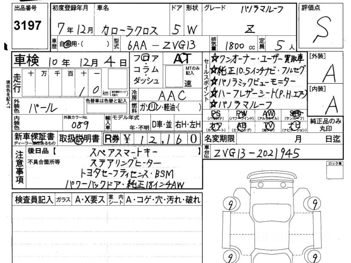 Оценка аукциона: S, что гарантирует хорошее техническое и косметическое состояние кузова и салона.