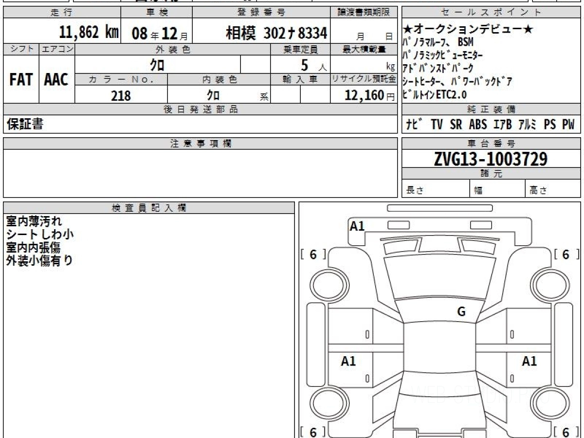 Оценка аукциона: 5, что гарантирует хорошее техническое и косметическое состояние кузова и салона.