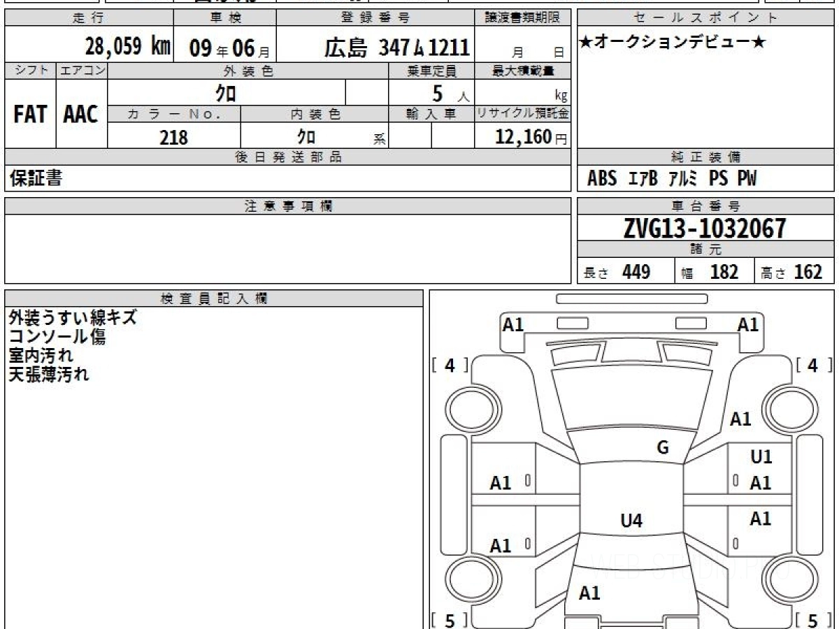 Оценка аукциона: 3.5, что гарантирует хорошее техническое и косметическое состояние кузова и салона.