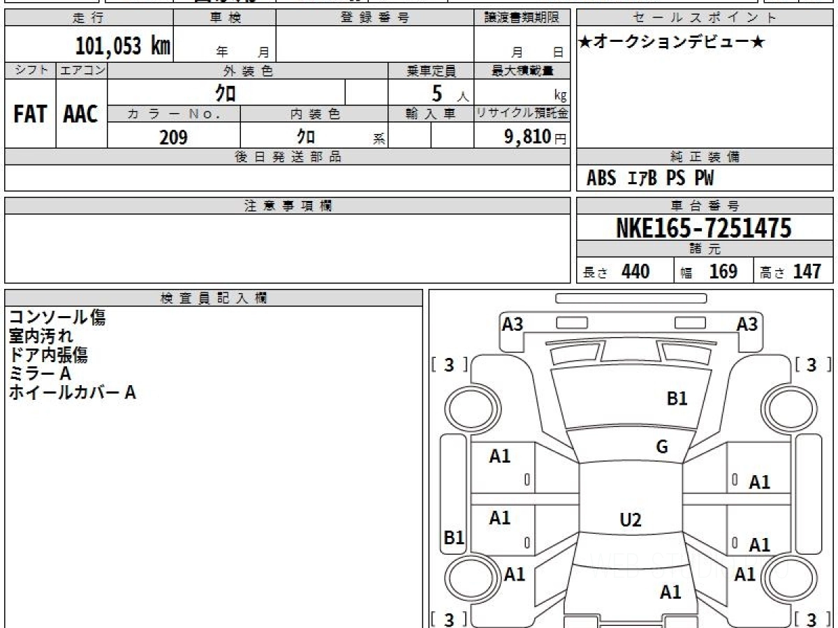 Оценка аукциона: 4, что гарантирует хорошее техническое и косметическое состояние кузова и салона.