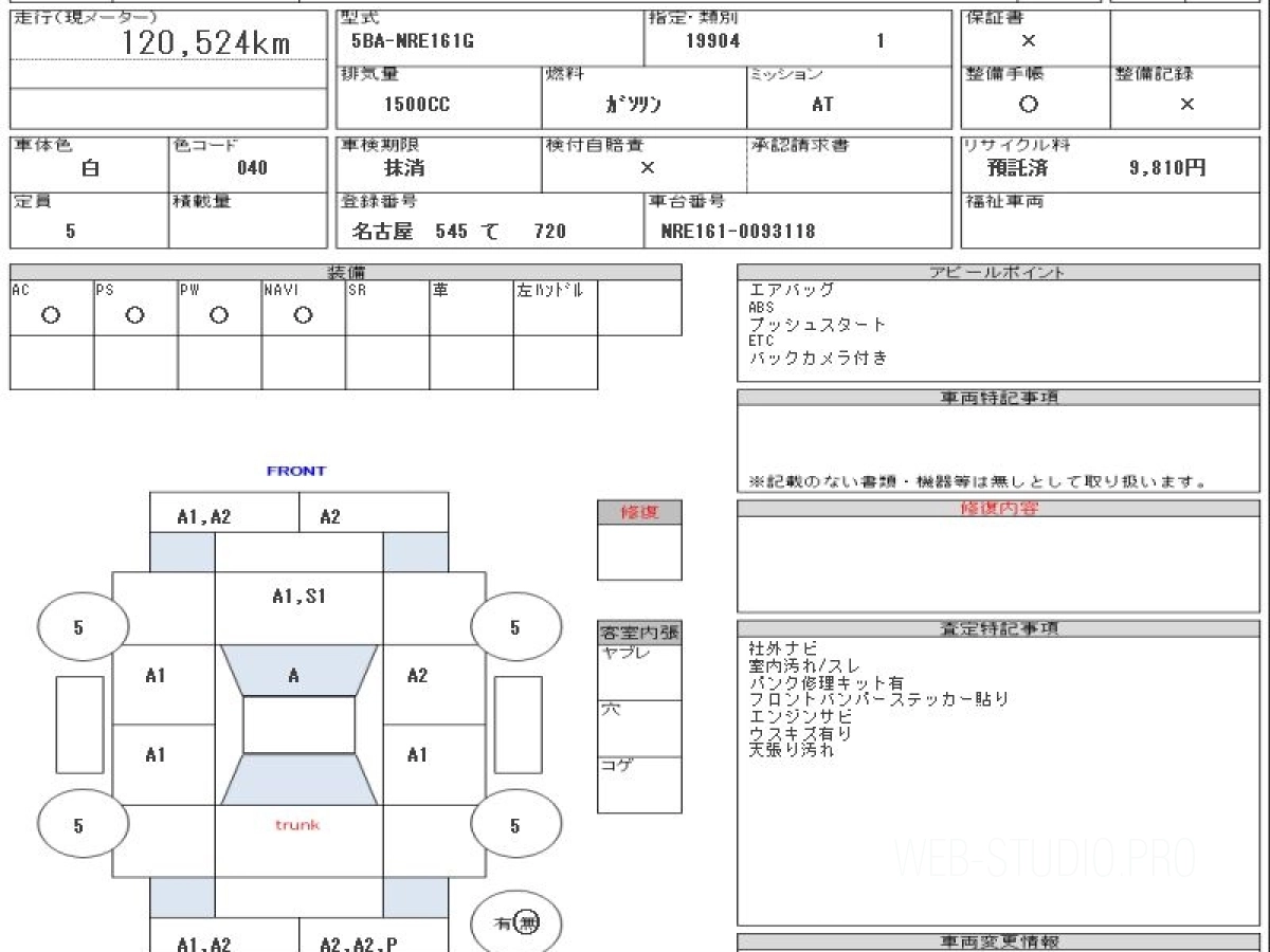 Номер кузова: NRE161G.