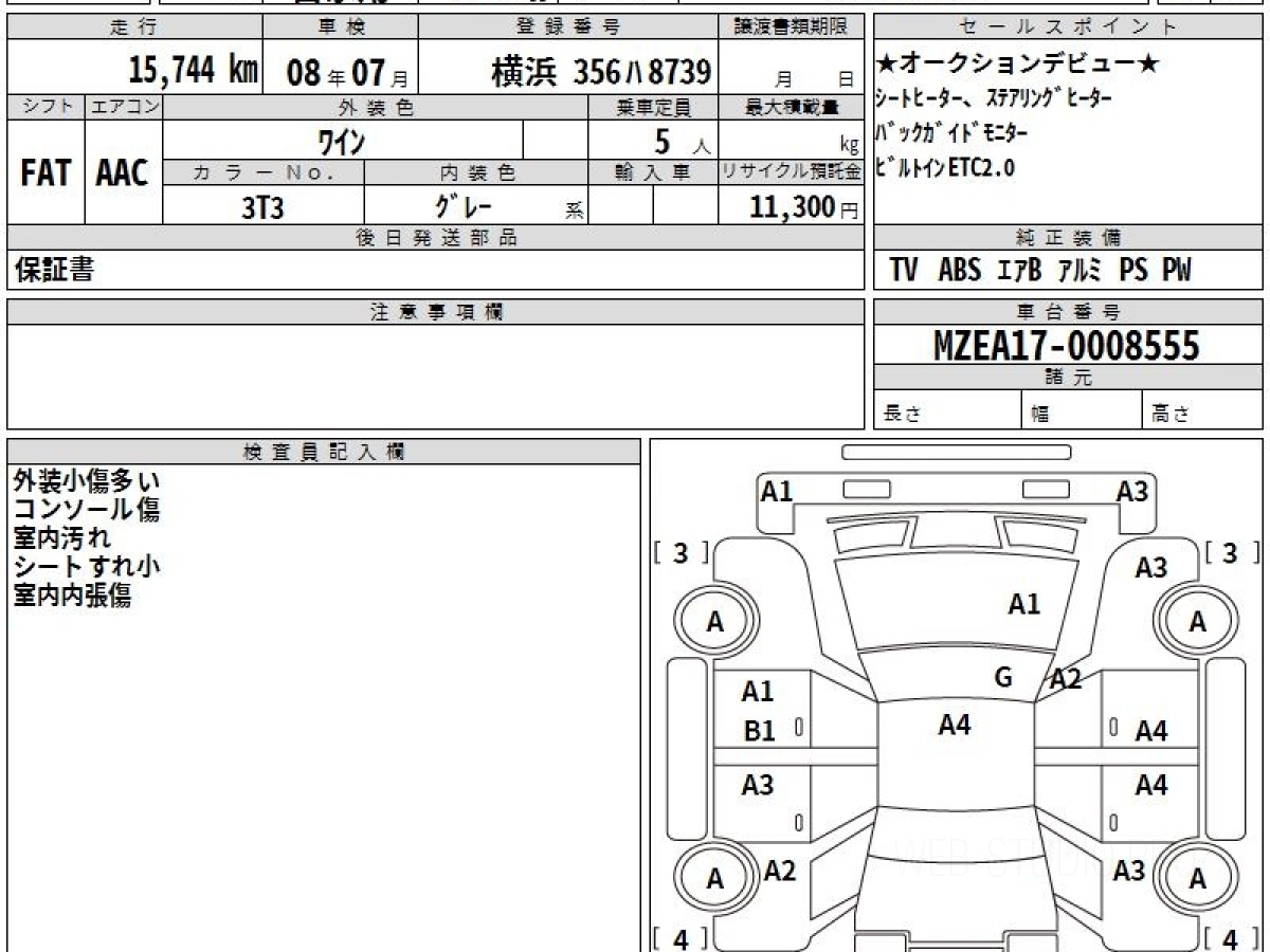 Оценка аукциона: 3.5, что гарантирует хорошее техническое и косметическое состояние кузова и салона.
