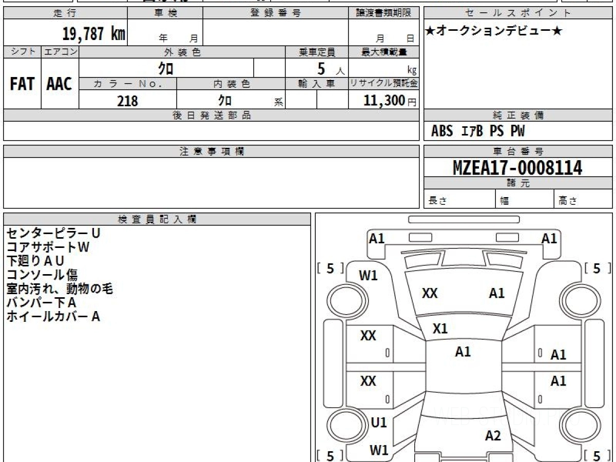 Оценка аукциона: RA, что гарантирует хорошее техническое и косметическое состояние кузова и салона.